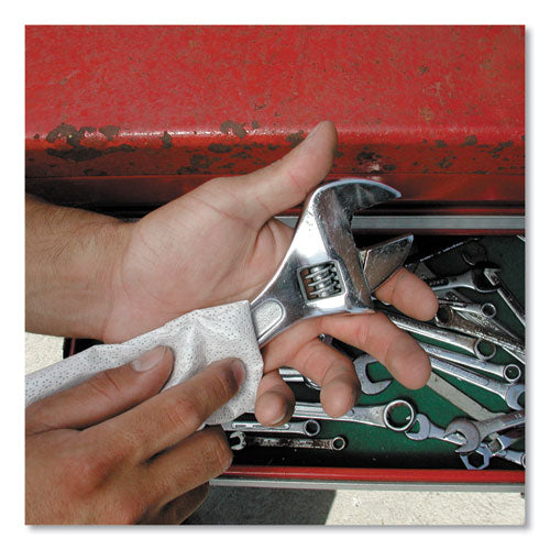 Simple Green Safety Towels are larger-sized wipes for heavy-duty, multi-purpose cleaning. They are pre-moistened with Crystal Simple Green, a powerful cleaner and degreaser that is both non-toxic and biodegradable. The durable, dual-sided wipes feature a scouring side for tough scrubbing and a smooth side for a non-abrasive shine. The wipes feature excellent wicking and fluid holding capacity for cleaning liquid spills and are thermally bonded and melt-blown to ensure durability and resistance to rot and mildew. Easily remove grease, oil, food spills, wet paint, carbon, graphite, tar, soot, grime, most inks and more. They are safe for use on all washable surfaces including metals, concrete, rubber, finished wood, tile, laminates, concrete, stone, porcelain, carpets and other industrial surfaces. The cleaning solution contains no added color or scent and is NSF registered for use in food processing facilities and commercial kitchens. Towel/Wipe Type: Cleaner/Detergent Wet Wipe; Application: General Purpose; Material(s): Cloth; Number of Plies: 1.