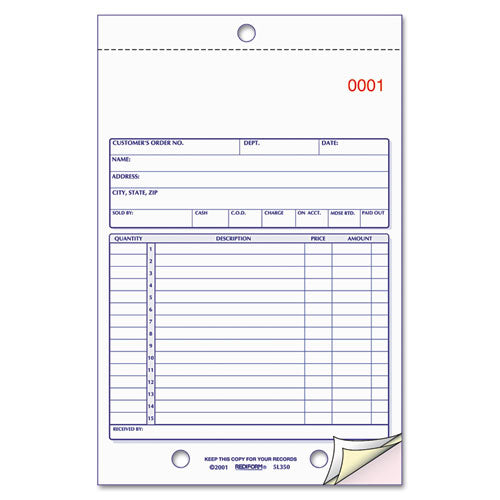 Sales Book, 5 1-2 X 7 7-8, Three-part Carbonless, 50 Sets-book
