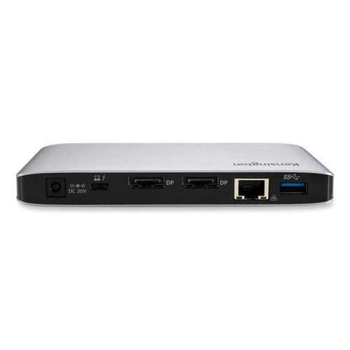 With the need for an affordable, full-featured Thunderbolt 3 desk dock that takes up little valuable desk space, the SD2480T Thunderbolt 3 and USB-C Dual 4K hybrid nano dock delivers. Built for office use, it's the most compact 10-port Thunderbolt 3 laptop docking station, offering single 8K or dual 4K video @ 60Hz, 60W power delivery, 40Gbps data throughput, four USB ports, SD 3.0 UHS-I SD and Micro SD cards, Gigabit Ethernet, a combo audio jack; forward compatible with Thunderbolt 4 and backward compatible with USB-C laptops. Includes free Kensington DockWorks™ software. Best for us with Thunderbolt 3, Thunderbolt 4, and USB-C laptops and monitors that support up to 4K. Thunderbolt 3 and USB-C connectivity (Thunderbolt 4 laptops supported at Thunderbolt 3 features). Supports USB-C PD 3.0 (60W of laptop charging). Supports two monitors. Dual video DisplayPort v1.4. Maximum resolution supported is Thunderbolt 3 single 8K 30Hz or dual 4K 60Hz via two DisplayPort v1.4 ports; USB-C Alt Mode single 4K 60Hz or dual 4K @ 30Hz for HBR3 laptops, or single 4K 30Hz or dual 1080p @ 60Hz for HBR2 laptops. Plug & Play installation, though installation of Kensington DockWorks™ software is recommended for the best connection, performance, and security from your Kensington docking station. Compatible with laptops equipped with Thunderbolt 3 and USB-C ports supporting DisplayPort Alt Mode. Supports up to 40Gbps total bandwidth for Thunderbolt 3 laptops, and up to 10Gbps for USB-C laptops.