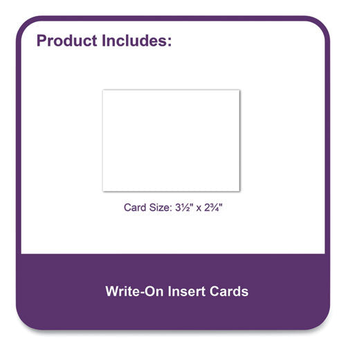 Eliminate the potential for damage associated with staples and paper clips. Self-adhesive holders are extremely convenient -- simply peel, stick and apply to any clean, flat surface. Durable, PVC-free material provides reliable protection and a professional appearance. Top Load Labeling Pockets—Includes customizable cardstock inserts. Color(s): Clear; Size: 3.75" x 3"; Load Style: Top; Material(s): Poly.