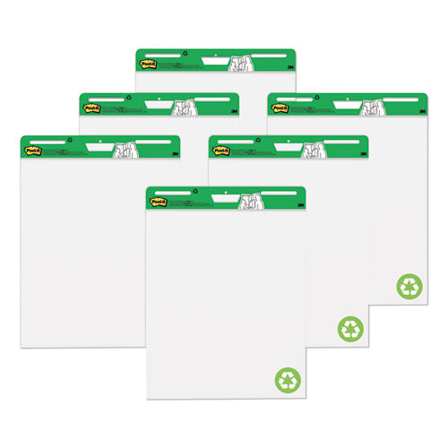 Use Post-it® Easel Pads to capture and share ideas. With sheets that can stick almost anywhere, Post-it® Easel Pads foster the imaginative thinking that lays the foundation for future growth. So when you want to successfully plan, collaborate, and capture and build on ideas, they're ready to help you succeed. Post-it® Easel Pad sheets feature premium paper that resists marker bleed-through; they stick to most surfaces and can be repositioned again and again, without surface damage. The sturdy backcard features a handle for easy portability and universal slots to fit most easel stands. Recycled Pads Value Pack—Stock up and save! Book/Pad Binding Type: Stapled; Book/Pad Binding Edge: Top; Book/Pad Sheet Size: 25 x 30; Book/Pad Subjects/Sections: 1.