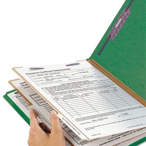 Six-section Pressboard Top Tab Classification Folders With Safeshield Fasteners, 2 Dividers, Letter Size, Green, 10-box