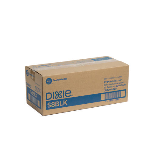 Slim Unwrapped Plastic Straws, 8", Plastic, Black 500/box, 10 Boxes/carton