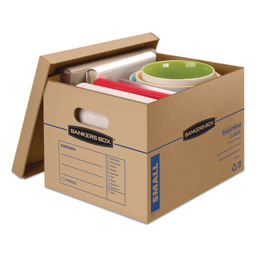 Smoothmove Classic Moving-storage Boxes, Small, Half Slotted Container (hsc), 15" X 12" X 10", Brown Kraft-blue, 20-carton