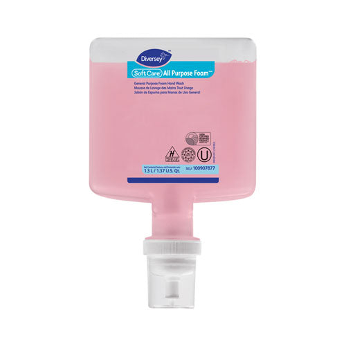 Soft Care All-Purpose Foam is a hand wash with a refreshing lemon tea splash fragrance which provides a pleasant aroma for use in washrooms. This hand wash contains an effective surfactant system that gently lifts dirt from skin. Provides a solution for areas where an economical and pleasant to use hand wash is desired. Soap Type: Foam; Application: Hand; Capacity (Volume): 1.3 L; Scent: Floral.