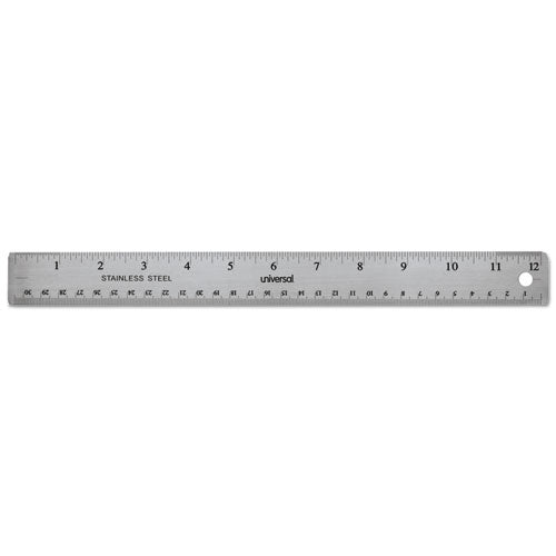 Long-lasting stainless steel ruler is right for even the toughest environments. Cork back prevents slipping. Has convenient hang-up hole. With standard and metric measurement markings. Ruler Type: Standard/Metric; Length: 6"; Standard Scale: 1/16"; Metric Scale: Centimeters; Millimeters.