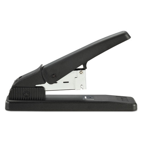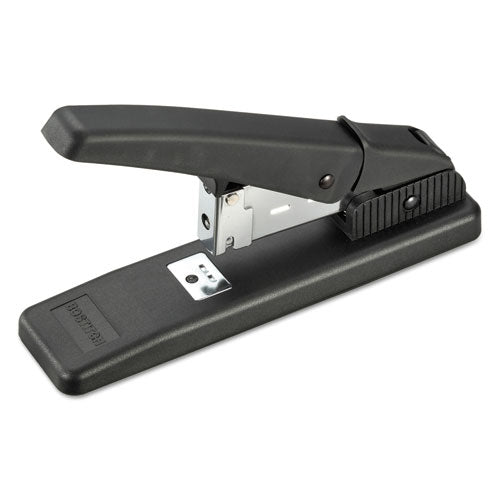 Heavy-duty stapling in a space-saving design. Featuring No-Jam™ technology to prevent staple jams during projects. Non-skid base provides desktop protection and stability during high volume use. High Capacity Stapling: Yes; Flat Clinch Plate: No; Tacking: No; Type of Staple Used: Heavy-Duty.