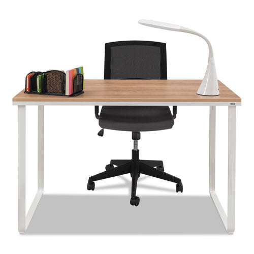 Slim profile makes this desk a perfect fit for every workspace, no matter the existing decor. Its steel, u-shaped legs create smooth lines, and its simple design adds style without sacrificing function. The desk also features a wood laminate top. Worksurface/Base Color: Beech/White; Color Family: Beech; Worksurface Shape: Rectangular; Worksurface Material: Laminate.