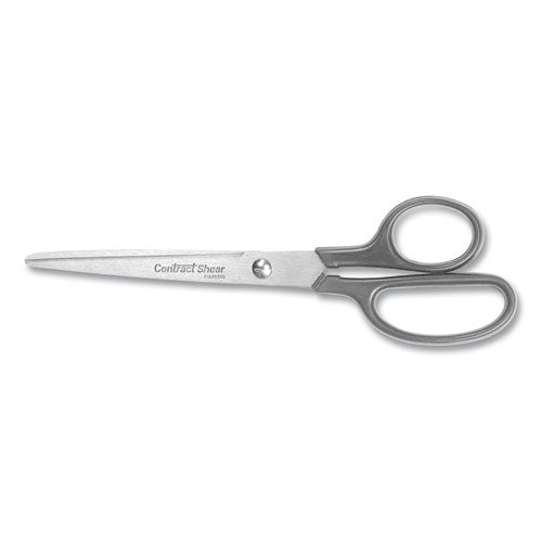 Strong and lightweight, these all-purpose stainless steel shears are perfect for use at the office, in school or at home. Universal design enables right- and left-handed use. Slightly blunted tip provides a measure of safety. Cutting Tool Style: General Purpose; Tip Type: Rounded; Cut Length: 3"; Overall Length: 8".