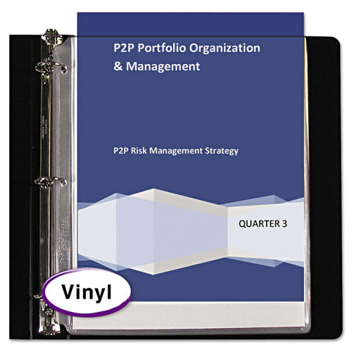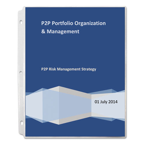 Expand the life of your documents by providing maximum durability. The thickness of these vinyl sheet protectors offers outstanding performance in preserving and protecting high-use documents, letters and reports. Uniquely shaped corners make pages easy to turn. Presentations stand out with heavy, rigid construction. No sheet punching necessary, since holders are pre-punched to fit with a standard three-ring binder. For 8 1/2" x 11" size document storage. Load Orientation: Top; Sheet Capacity: 2; Sheet Protector Type: Ring Binder; Insert Size: 8 1/2" x 11".