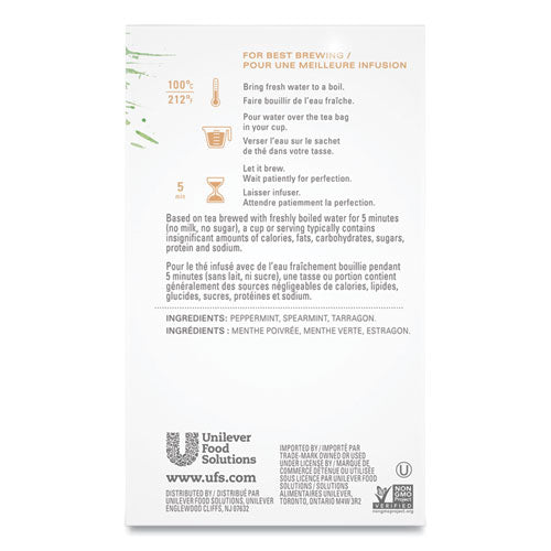 Choose your favorite from this variety of fine black, green and herbal teas. Each has an absolutely delicious flavor profile. Meticulously balanced, premium blends. Individually wrapped. Beverage Type: Tea; Flavor: Refresh™ Mint; Packing Type: Filterbag; Capacity (Weight): 1 oz.