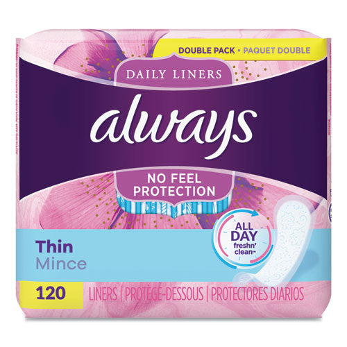 Thin Daily Panty Liners, Regular, 120-pack, 6 Packs-carton
