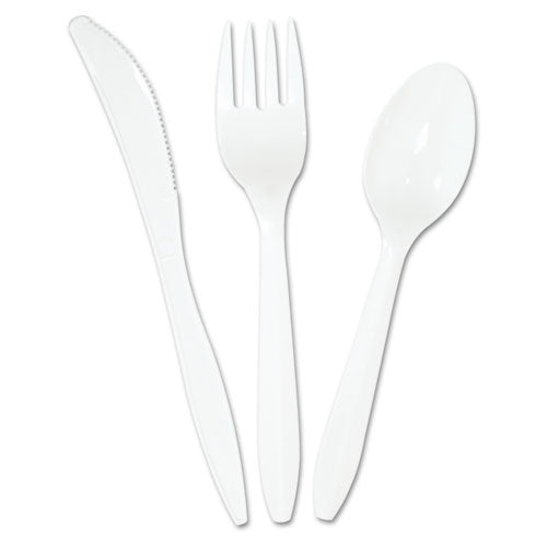 Three-piece Cutlery Kit, Fork-knife-teaspoon, Polypropylene, White, 250-carton