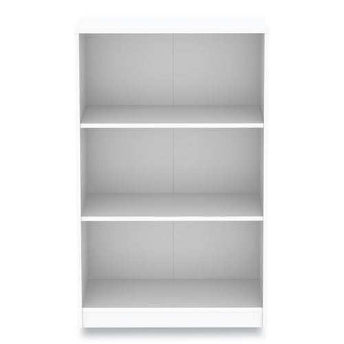 Workspace by Alera® Bookcases feature a contemporary design that fits perfectly into almost any professional or commercial space, from offices and classrooms to stores and cafes. Easy to clean laminated surfaces and rich, smooth finishes are as attractive as they are durable. Robust, commercial-grade top and side panels ensure sturdy performance, while their edge banding adds an extra element of dent and scratch protection. With the exception of the fixed bottom shelf and 1/3-height structural-integrity shelf, all additional shelves are both adjustable and removable, allowing you to configure your bookcase to best meet your needs. Tight and precise, dowel-and cam-lock system ensures easy, hassle-free assembly.