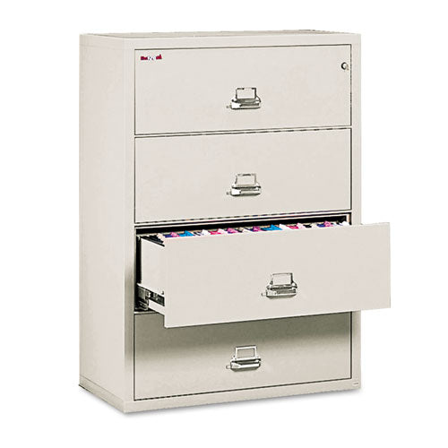 Insulation between drawers makes each drawer a separate, fireproof unit. Water-resistant—designed to prevent water damage resulting from sprinklers and fire hoses. Drill- and pick-resistant high-security key lock. Accommodates letter or legal size hanging folders. Color: Parchment; Color Family: Beige; Overall Width: 37.5"; Overall Depth: 22.13".