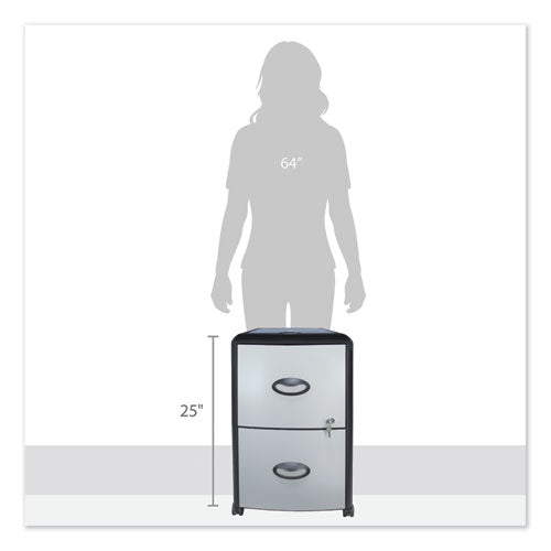 Two-drawer Mobile Filing Cabinet With Metal Siding, 19w X 15d X 23h, Silver-black