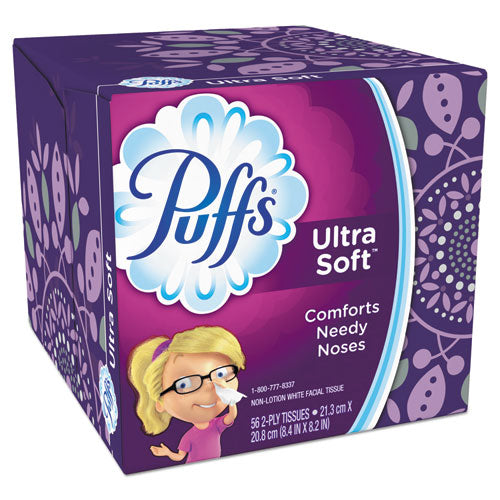 Durable, non-lotion facial tissue provides the perfect combination of softness and strength. They make an excellent addition to any room in your home or office. Sturdy enough to hold up to everyday sneezes and touch-ups. Puffs® facial tissues have Air-Fluffed™ pillows for a more cushiony feel. Tissue Type: Facial; Number of Plies: 2; Number of Sheets: 56 per cube; Length: 8.2".