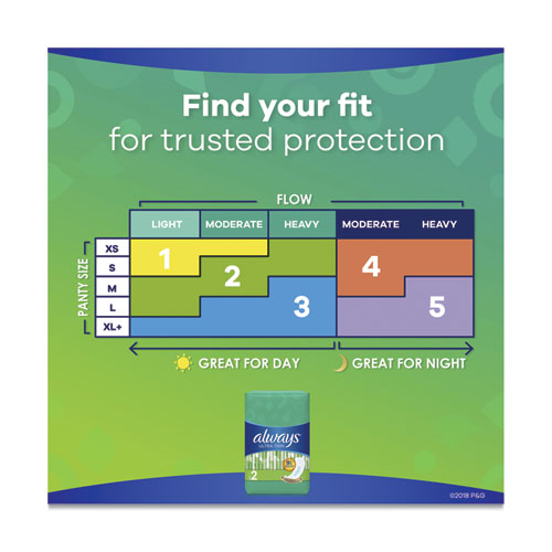 Hardworking pads provide up to 8 hours of LeakGuard™ protection for your heaviest days and nights. LeakGuard™ Core pulls fluid deep into the core and away from the edges. Pads absorb in seconds, keeping you dry and comfortable. Size 2, Super Long, Super Absorbent, 40/Pack. Absorbency: Super Long.