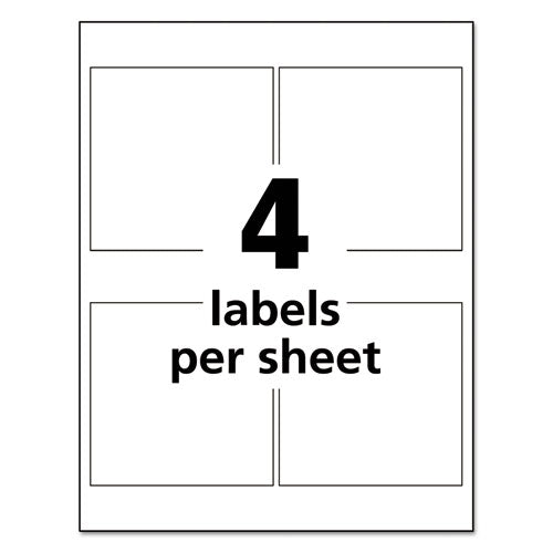 Waterproof and resistant to chemicals, abrasion, sun, tearing, and harsh temperatures. High-performance adhesive. Ideal for labeling drums, totes, pails, jugs and bottles. For Laser Printers—Easy Peel® for fast peeling. Letter-sized, 8.5 x 11 sheets. Shape: Square; Label Size - text: 4 x 4; Label Color(s): White; Color Family: White.