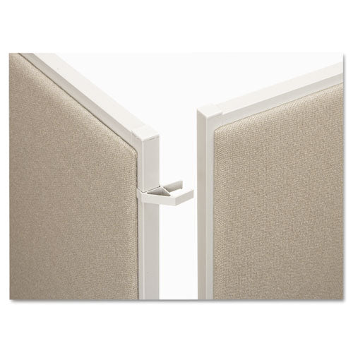 Includes top and bottom connector fittings as a pair. Connects two panels to form a right angle corner. Simply snap on at the top & bottom of the panel and slide the panels together. For a 3-way “T”, order two pairs of 90° connectors; for a 4-way “X”, order three pairs of 90° connectors. Color: Gray; Connecting Types: 90º Corner Connectors.