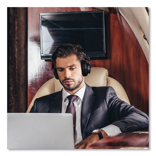 Verve HD Hybrid Noise Cancelling Wireless Headphones were designed with the Qualcomm® aptX™ HD Sound Codec for a truly immersive experience. Enjoy listening to the finer details of your music or movies in high-definition sound with powerful bass and experience the subtle nuances of better than CD quality. Hybrid Noise Cancelling virtually eliminates background noise and allows you to focus on what's important. Utilizing four separate microphones, they measure the ambient sound levels outside and inside the headphones and apply the noise cancellation. Turn the ANC off when you need to hear what is happening around you. These wireless headphones were built on the Bluetooth™ 5.0 platform, allowing Verve HD Bluetooth™ over ear headphones to communicate as low-energy devices, providing a stronger signal for better stability and improved battery life up to 40 hours. Engineered with USB Type-C charging port and a specially formulated battery that supports 2x fast charging. In the rare case that your wireless headphones run out of power, a 15-minute quick charge will provide up to five hours of use. The ear cushions are designed with a protein leather, to simulate the natural feel of leather on your skin. Plush memory foam inner cores surround your ears in comfort while providing insulation from ambient room noise. These wireless headphones work in both wireless and wired mode with the included USB Type-C to 3.5 mm cable. Comes complete with an Airplane adapter, so you can relax and listen in true stereo. Optimized for Video Conferencing, the Verve HD Hybrid ANC wireless headphones were designed to work with Zoom, Microsoft Teams, Google Meet, WhatsApp, WebEx, WeChat, Skype many conference call applications, so you can connect with your customers or associates and communicate clearly.