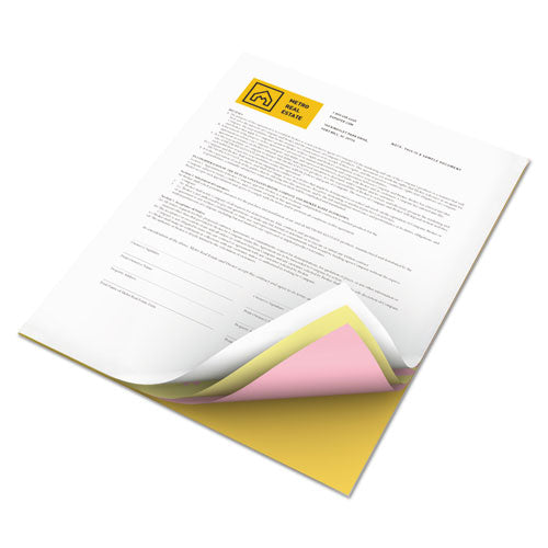 Multipurpose carbonless paper is good for a wide variety of forms. Designed for optimal performance in digital and offset printing. Engineered to run cleaner and reduce the risk of contamination. Brightest base sheet enhances images. Great for image legibility on multiple part forms. Performance guaranteed. Sheet/Roll Size: 8.5 x 11; Paper Basis Weight (lb): 20 lb / 21 lb / 22 lb; Paper/Media Color(s): Goldenrod/Pink/Canary/White; Color Family: Multicolor.