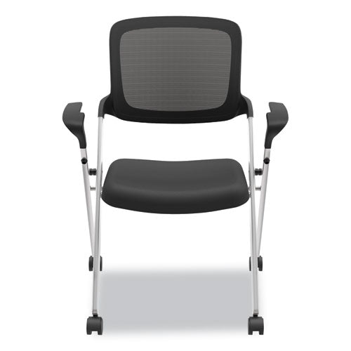Vl314 Mesh Back Nesting Chair, Black Seat-black Back, Silver Base