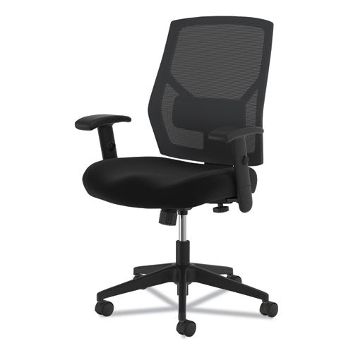 Breathable mesh back delivers cool comfort. Height- and width-adjustable arms customize your comfort. Adjustable lumbar support enhances lower back comfort. Simple, clean design gives any space a professional look. Reinforced five-star base offers incredible durability. Recommended Applications: General Office & Task; Seat Color: Black; Back Color: Black; Color Family: Black.
