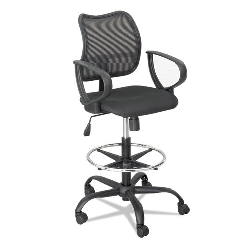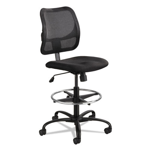 Perfect for a photo studio, drafting table or for use with a standing-height desk. Breathable mesh back design adds comfort to the workday or makes an attractive addition in meeting spaces. Solid construction offers 250 lb capacity. Adjustable footring for comfort and stability and may help support better circulation in the legs. Ergonomic, height-adjustable seat that may help prevent fatigue. Wide 25" diameter steel base for stability. Swivel tilt mechanism, tilt tension knob and tilt tension and 360° swivel may help support better posture and ease pressure points. Fabric. Recommended Applications: Drafting, Warehouse & Industrial—Stools; Seat Color: Black; Back Color: Black; Color Family: Black.