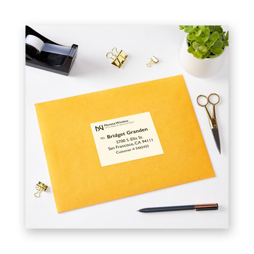Don't let a little rain or snow worry you when you need to send a package. Waterproof labels stand up to the toughest environmental conditions and extreme temperatures, while resisting scuffs, tears and smudges, so they remain easy to read. Ultrahold® Adhesive sticks to more tough surfaces: metal, plastic, glass and more, ensuring your label doesn't fall off your package. They also resist. TrueBlock® Technology completely covers everything underneath your label, so you can reuse boxes, mailing tubes and more. With free printable templates and designs from Avery® Design & Print, you can create custom labels with sharp text and graphics in minutes. Waterproof and UV-resistant. 8.5" x 11" sheets for laser printers. Shipping Labels with Sure Feed™—Designed for a reliable printer feed. Shape: Rectangular; Label Size - text: 3.33 x 4; Label Color(s): White; Color Family: White.