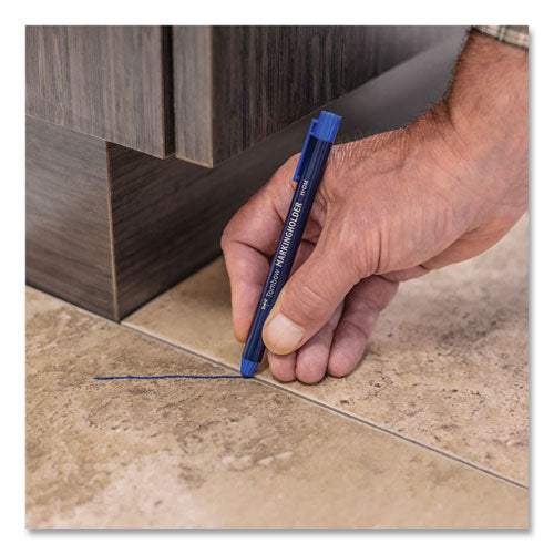 Versatile wax-based marking pencil for smooth, legible writing on a variety of surfaces. Use on both porous and nonporous surfaces, such as ceramics, stone, wood, glass, rubber, plastic, textiles, metal, coated paper, cardboard and more. Water-resistant and works great on both dark and transparent surfaces. Easily erase from nonporous surfaces by wiping with a damp cloth. Refillable pen-style body features rotate-to-advance system and durable clip, making it easy to use and store. No sharpening needed and pen-style design ensures entire marking pencil is used without any waste. Perfect for craftsmen and professional use in industrial environments. Economical to refill and reuse existing applicator.