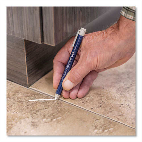 Versatile wax-based marking pencil for smooth, legible writing on a variety of surfaces. Use on both porous and nonporous surfaces, such as ceramics, stone, wood, glass, rubber, plastic, textiles, metal, coated paper, cardboard and more. Water-resistant and works great on both dark and transparent surfaces. Easily erase from nonporous surfaces by wiping with a damp cloth. Refillable pen-style body features rotate-to-advance system and durable clip, making it easy to use and store. No sharpening needed and pen-style design ensures entire marking pencil is used without any waste. Perfect for craftsmen and professional use in industrial environments. Economical to refill and reuse existing applicator.