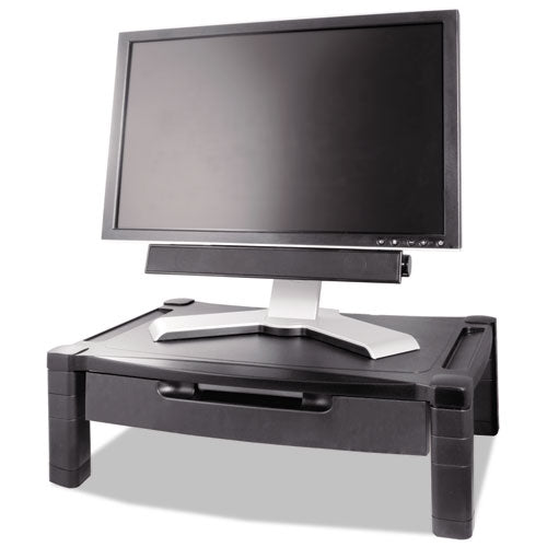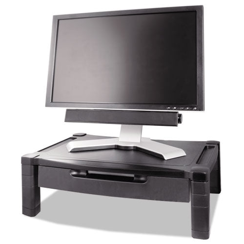 Wide Deluxe Two-level Monitor Stand With Drawer, 20" X 13.25" X 3" To 6.5", Black, Supports 50 Lbs