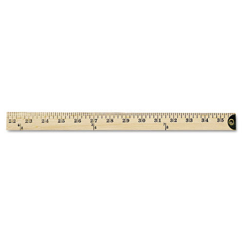 Has fully numerated graduations and flush-length design for easy use. Made of only the finest kiln-dried lumber. Numerals and graduations are sharply delineated. Clear lacquer finish. Metal ends. Hang-up hole at each end. Ruler Type: Standard Yardstick; Length: 36"; Standard Scale: 1/8"; Material(s): Wood.