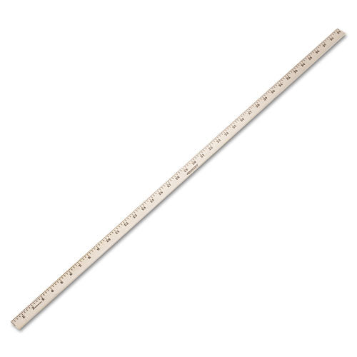 Rich hardwood meter stick fits right into conference rooms, briefing rooms and classrooms. Bold black markings offset the blonde, natural color of the wood. Clear lacquer finish helps prevent chipping and splintering. Ruler Type: Metric; Length: 39 1/2"; Standard Scale: 1/8"; Metric Scale: Millimeters.