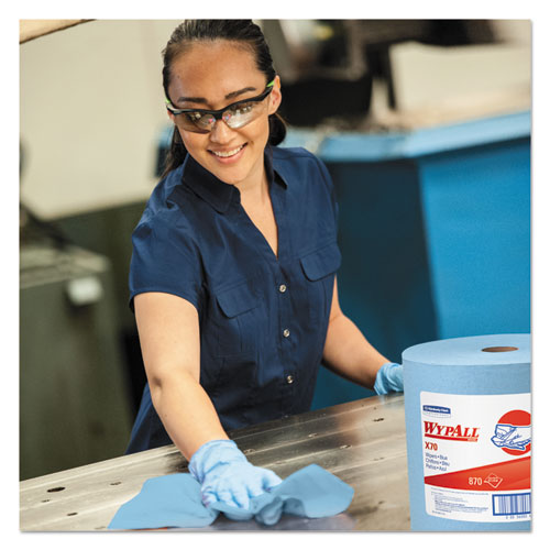 With high-tech HydroKnit fast-absorbing material, WypAll® X70 cloths are made of soft pulp fibers, bonded to a polypropylene base sheet for absorbency and tear-resistance, making them suitable for removing dirt, oil, grime and solvents in a variety of industrial and manufacturing industries. They are so sturdy that they can often be used more than once (once you've used them a few times, they're disposable). They are designed to clean surfaces and tools, making them a must-have for the HVAC, automotive, manufacturing and industrial industries. Jumbo Roll. Application: General Purpose; Industrial; Material(s): HYDROKNIT*; Color(s): Blue; Scent: Unscented.